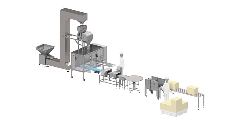 Designed for roasted coffee beans and ground coffee, the machine can also integrate degassing valve application for coffee packaging. The system integrates easily with multihead weighing systems and other coffee packaging line equipment such as conveyors, case packing, and palletising systems.