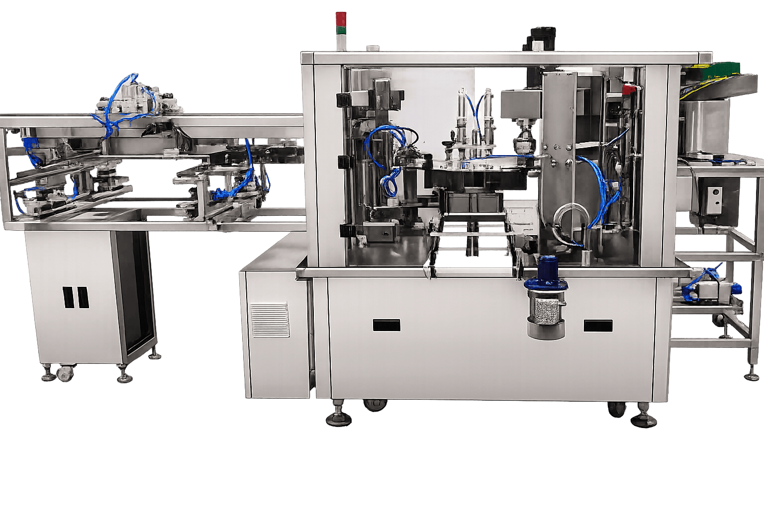 The ADM-NRCSP series integrates pouch loading, filling and capping into a controlled multi-station process, ensuring reliable throughput while protecting pouch integrity. Designed for integration into complete packaging lines, the system can be combined with conveying, inspection and end-of-line automation to deliver a fully automated liquid packaging solution.