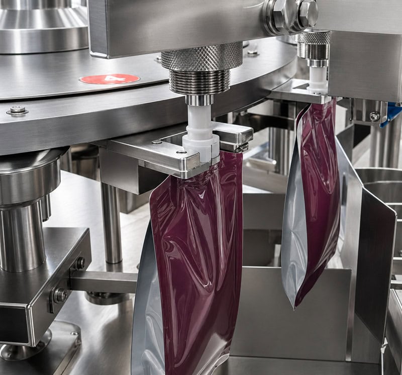The filling system can be configured to suit different product viscosities, enabling accurate dosing of liquids such as beverages, dairy products, sauces and other flowable products. Integrated spout capping ensures secure closure, maintaining product integrity and preventing leakage during handling, transport and storage.