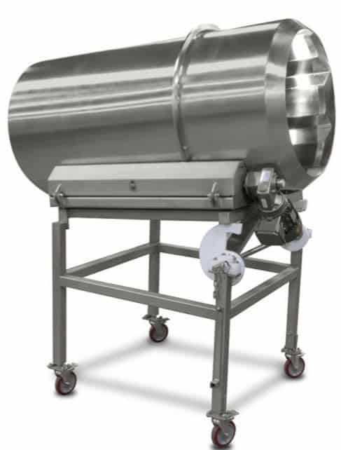 A Tumble Drum is commonly used to evenly mix and distribute food products such as nuts, spices, cereals and snack foods prior to packing or the next stage in the food processing line. It can also be used to declump and polish food products such as dried fruit and legumes. The drums rotate smoothly allowing a gentle mix and the tilt action angle is ideal for product aeration. These drums are custom built from a stainless steel construction to meet food safety requirements and integrate seamlessly in most environments.